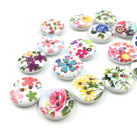 Bán Sỉ Đầy Màu Sắc Hoa In 2 Lỗ Tùy Chỉnh Nút Gỗ